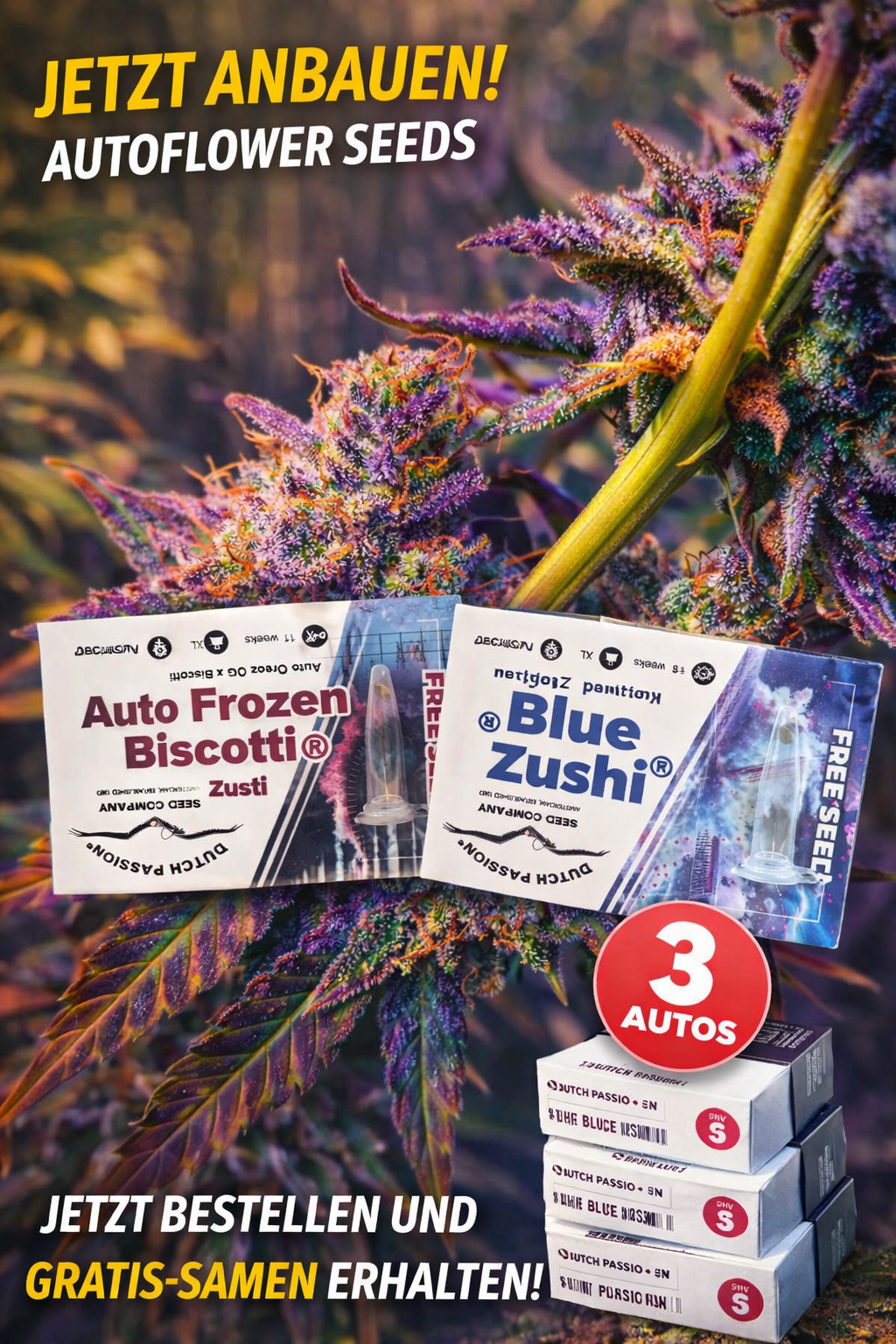 Jetzt Dutch Passion kaufen und gratis Samen dazu erhalten, passend zu feminisierten und automatischen Samen. Auto Frozen Biscotti oder Blue Zushi.