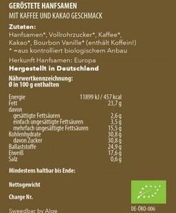 - ✅ Geröstete & kandierte Bio-Hanfsamen ✅ Verfeinert mit Kaffee, Kakao und Vanille ✅ 🌟 Enthält natürliches Koffein – ideal für die Pause! ✅ Bio, vegan, halal, koscher, laktosefrei & glutenfrei ✅ Inhalt: 250 g / 500 g / 1 kg