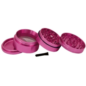 - 4-teiligee Premium-Kräutermühle in Pink mit ca. 61 mm Durchmesser Diamantförmige Zähne für perfektes, gleichmäßiges Mahlen Starke Magnetverschluss und Pollen-Sammelkammer Eloxierter Aluminium-Bau – langlebig und kratzfest Inklusive Pollen-Schaber und Elements-Design Ideal für große Mengen und stilvolle Sessions