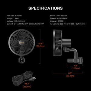 - 🌱 6-Zoll Clip-Ventilator – perfekt für Growzelte 💡 10 Geschwindigkeiten & Oszillation – volle Kontrolle 🌞 EC-Motor & 315 CFM Airflow – leise & kraftvoll 🔋 Smart Control via GGS Controller & App 🏡 Wasserfest & langlebig – bis zu 6.700 Betriebsstunden