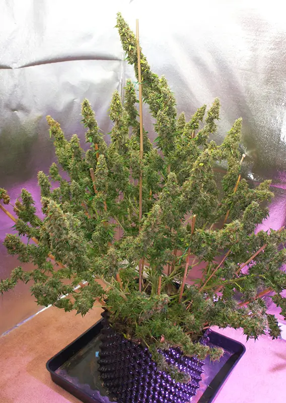 Dutch Passion Auto Mazar wächst kompakt, kräftig und mit einer klassischen Weihnachtsbaumstruktur. Die Pflanze bildet viele starke Seitenzweige, die dicht mit schweren, harzigen Buds besetzt sind.