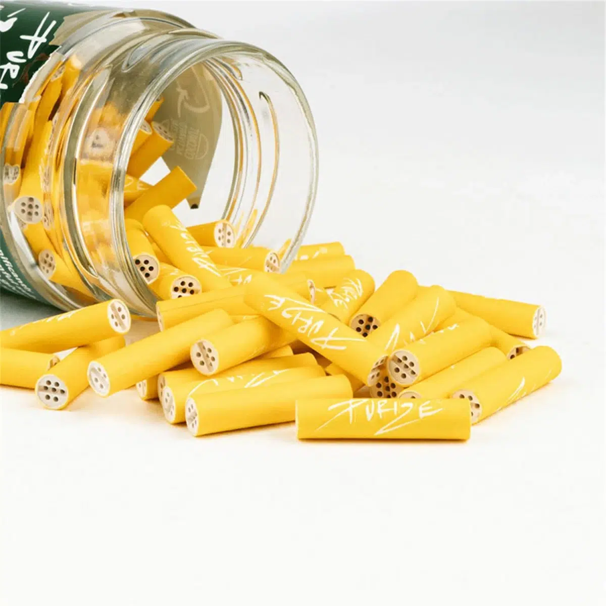 💛 PURIZE Aktivkohlefilter XTRA Slim 6 mm – Gelb Edition im Glas (100 Stück)