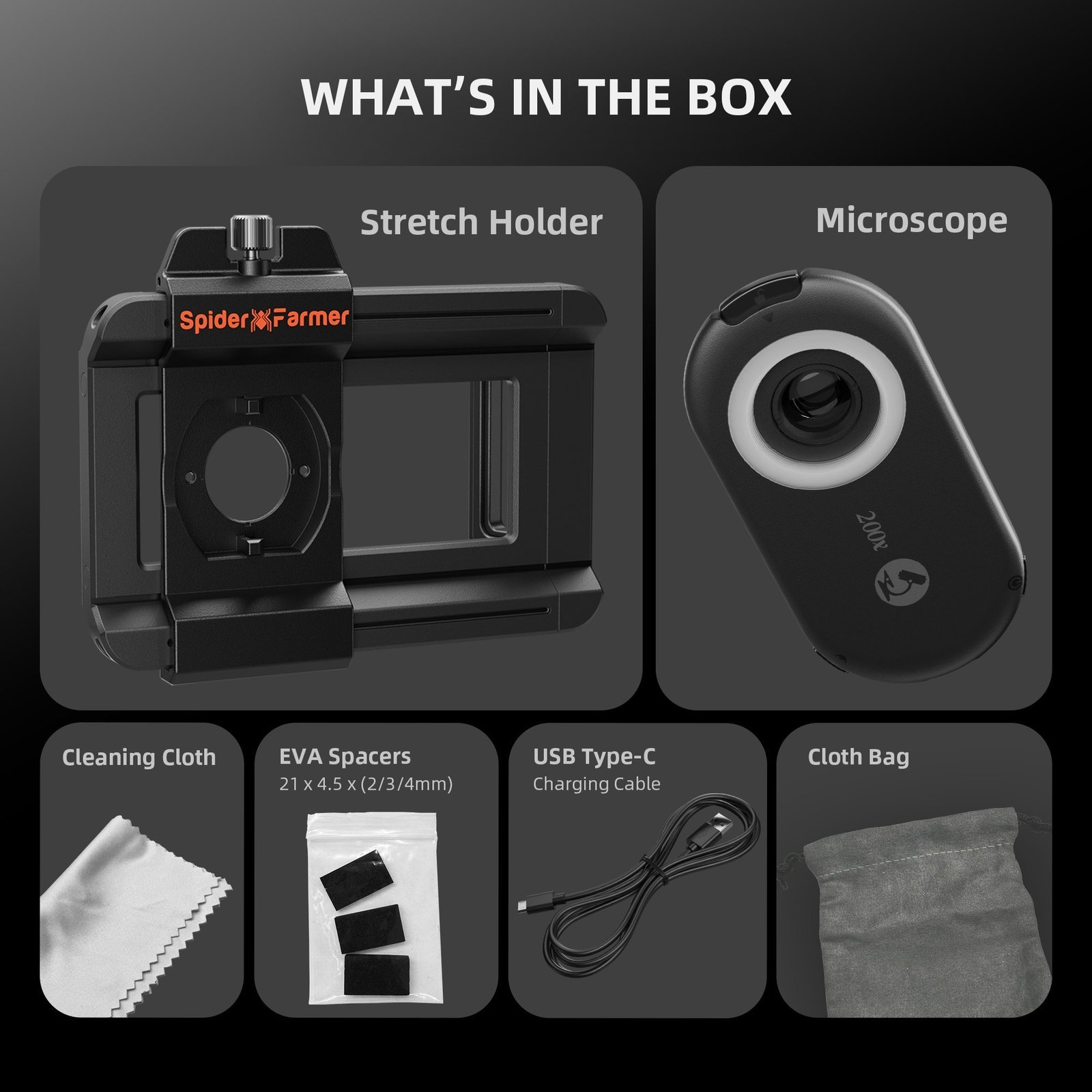- 1 × Spider Farmer 200X Trichomen-Mikroskop mit LED, UV und CPL
