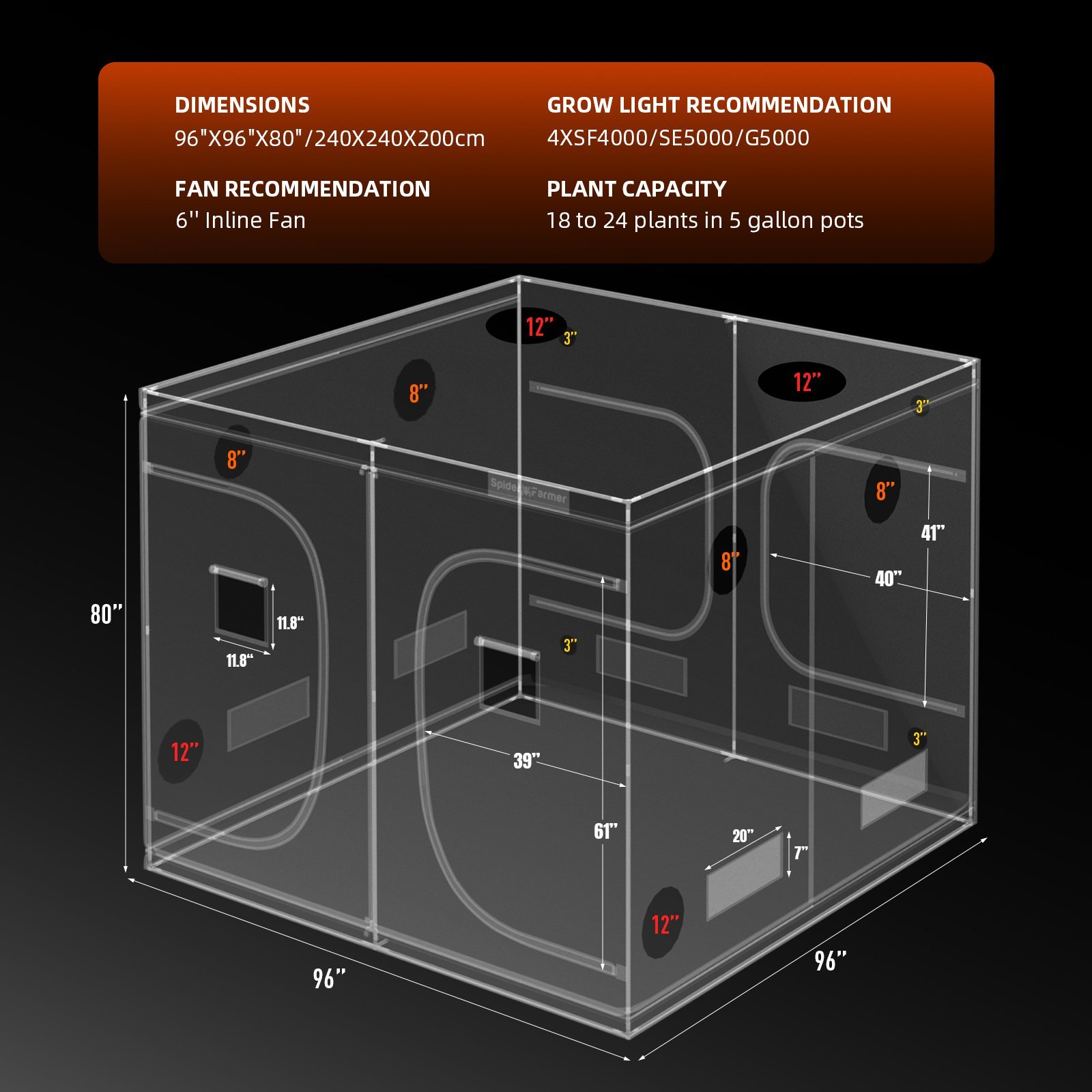 Detaillierte Eigenschaften – Spider Farmer Grow Box 240x240x200 cm