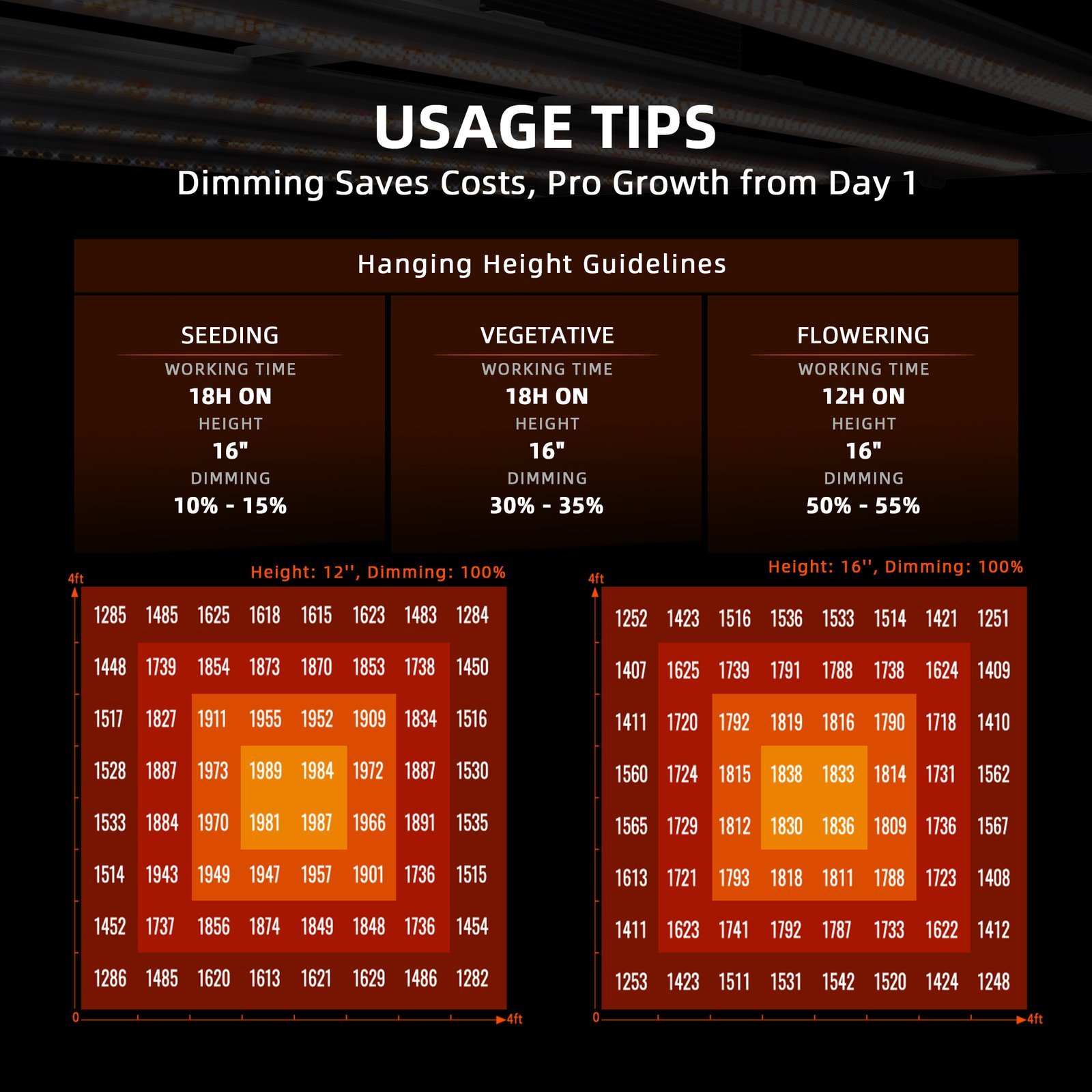 • Hohe LED-Dichte – bessere Lichtpenetration & gleichmäßigere Abdeckung