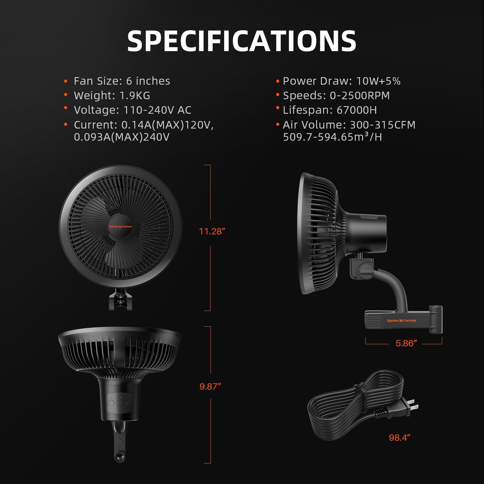 - 1× 6″ Clip-Fan (2025 Version), 10 Geschwindigkeiten, oszillierend